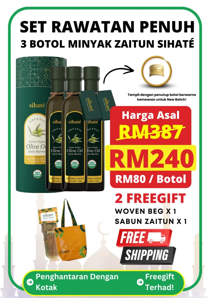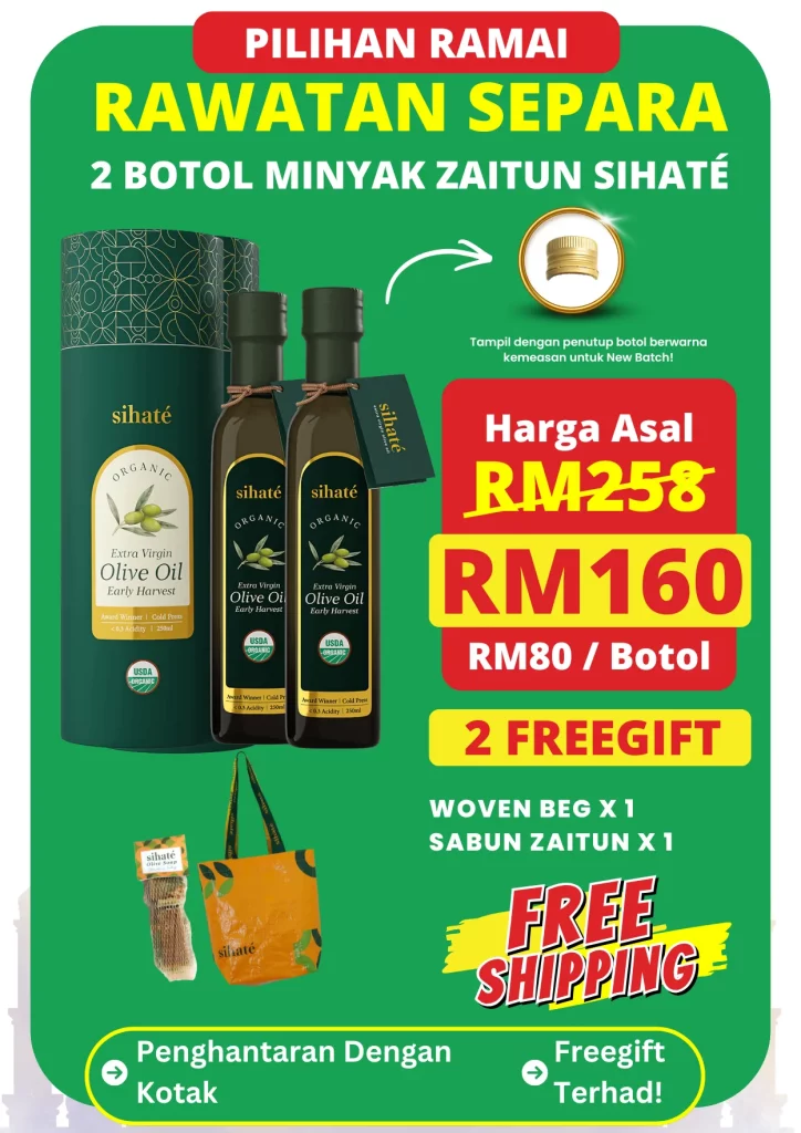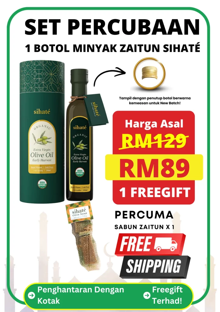 EVOO Sihaté adalah Extra Virgin Olive Oil berkualiti premium yang dihasilkan daripada buah zaitun yang dituai awal di Turki, di mana proses perahan sejuk digunakan untuk memastikan kualiti minyak terbaik.